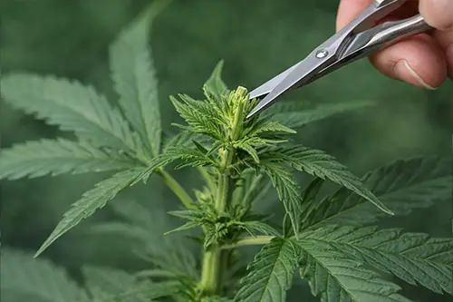 Cut the main growth tip to split the plant into multiple tops. This creates a bushier structure and improves overall yield.