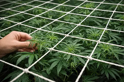 Guide your plants through a net to spread growth evenly. This increases light exposure and helps maximize yield across the canopy.